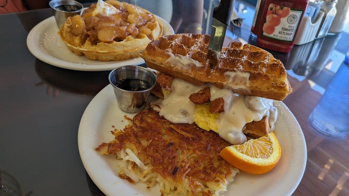 What really keeps me coming back is how the menu balances old-school comfort food with modern expectations. Their waffles are thick, golden, and crisp on the edges, the kind you can drown in butter without them turning soggy. I once asked the server how they keep that texture so consistent, and she explained that they rest the batter overnight, which lines up with culinary research from the American Culinary Federation about gluten relaxation improving tenderness and structure. You can taste the difference, especially when you order their blueberry or banana nut variations.